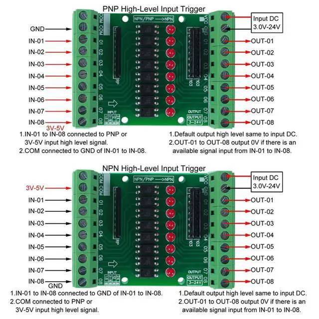 Product name: DC 3.3V 5V 8-Channel Optocoupler Isolation Module