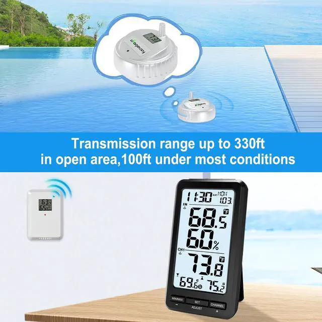 Wide ApplicationThe pool thermometer floating can be used in swimming pools, ice bath, ponds, hot tubs, and spas. It can also be used in aquariums and fish tanks to monitor the temperature of the water. Our pool thermometer package Included 1 pool sensor and an additional remote small sensor. The pool thermometer supports up to 8 thermometer sensors, you can to monitor different locations like refrigerator, green house, aquarium etc