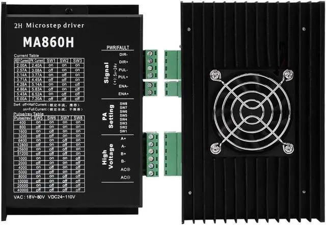 Stepper Motor Driver, MA860H 200KHz Stepper Motor Driver Microstep Controller Module 18-80V AC / 24-110V DC 7.2A for 2 Phase 86 Motor