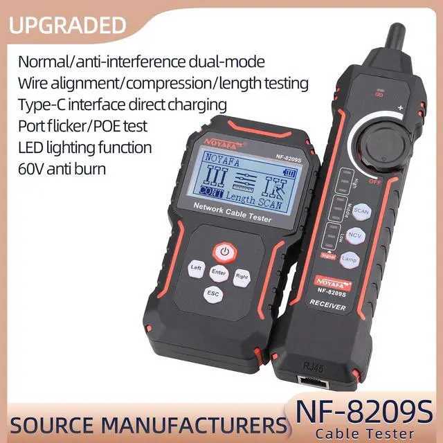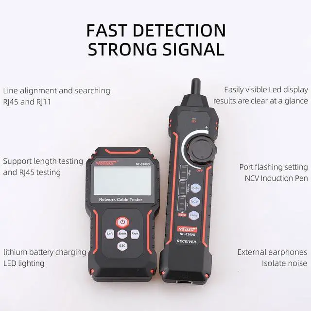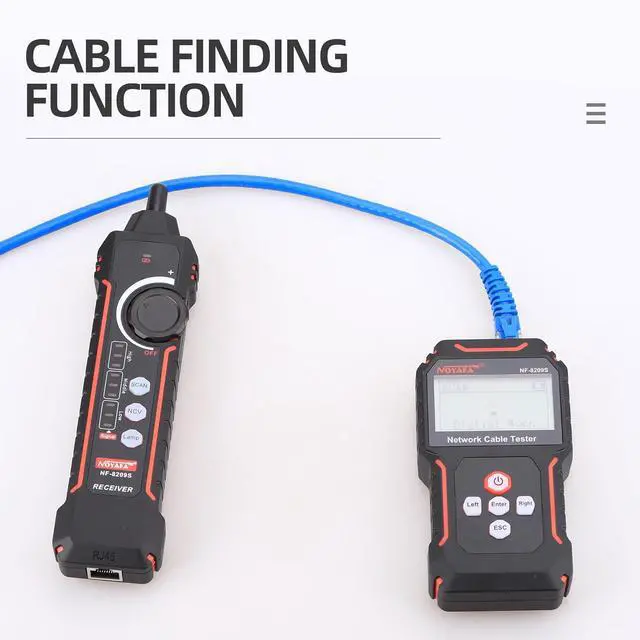 Cable length testing: The NF-8209S cable tester can provide AC filters, analog signals, and digital modes for tracking. It can measure cable length within a range of 1-500 meters and detect cable crossings, short circuits, and breaks.