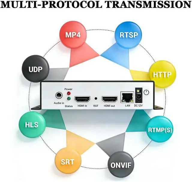Highly Customizable Settings to Meet Individual Needs- It supports adding static text, scrolling captions, brand logos, and timestamps. Users can freely adjust core parameters such as video resolution, frame rate, and bitrate, and also perform personalized editing functions such as video cropping, rotation, flipping, and mirroring. It supports dual input of HDMI embedded audio and line-in audio, with adjustable sound quality, making your live stream content more distinctive and allowing you to create a unique brand live stream style.