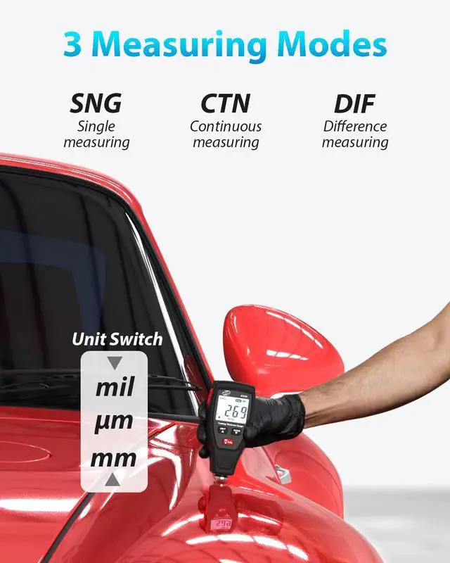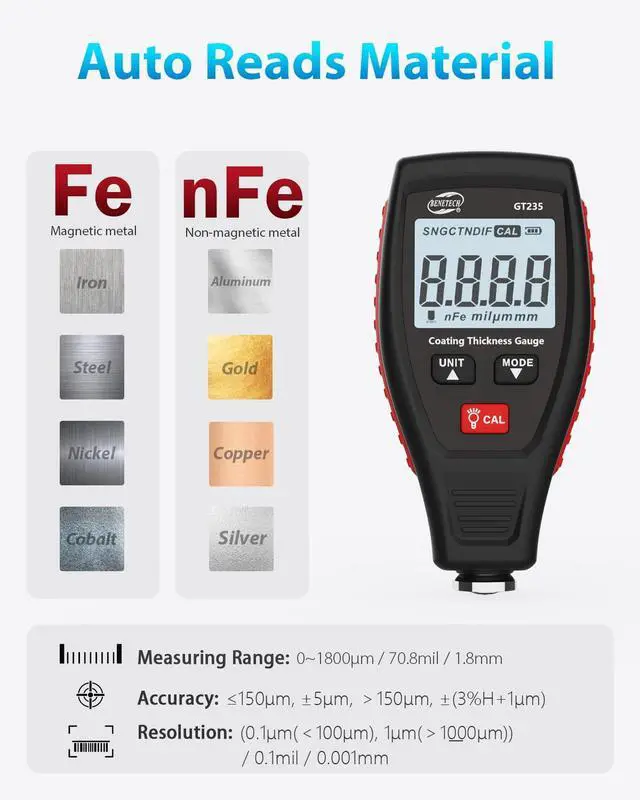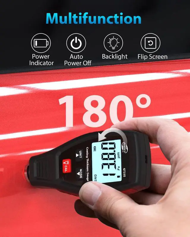 Easy Reading Save Power: The coating thickness gauge is equipped with an LCD backlit display screen for easy viewing of data under various lighting conditions. The device also has an auto power-off function to conserve battery power and prolong service life.