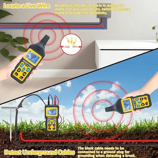 Wide Application: This underground cable locator is widely used in communication cable construction, power cable construction, and maintenance of communication cables, power supply lines, and electric heating lines. Most importantly, if you are testing multi-core cables, all but the target cable must be grounded.
