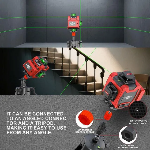 Magnetic Mount: The laser level comes with a tripod and a magnetic mount. The tripod included has a maximum height of 39 inches when fully extended, making it convenient for projecting at a height of 39 inches. If you are using it at a higher location, please fix it to the wall with a metal plate and then use the magnetic hook to attach the metal plate to secure it, allowing for use at any height and in any scenario.