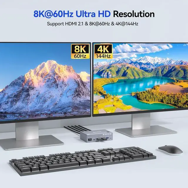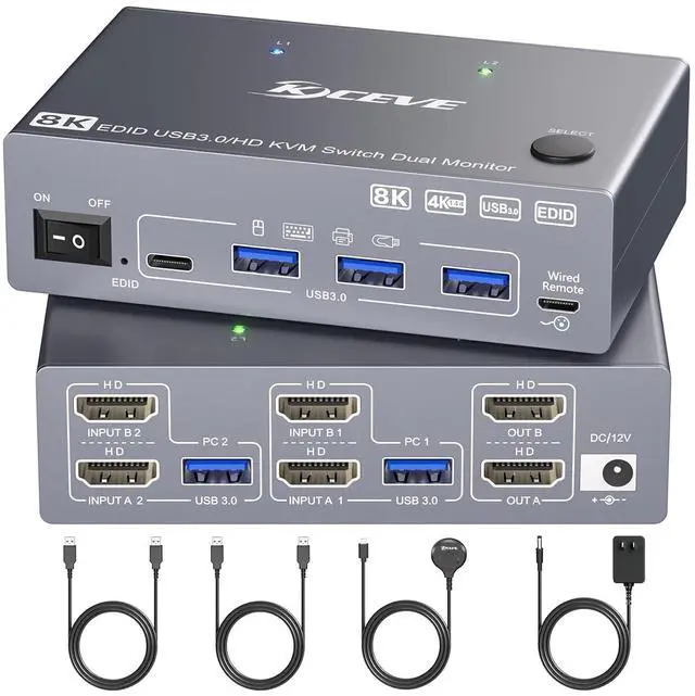 Stable Performance with Metal Housing Built with a high-performance chip and metal casing for durability. Includes 2 USB 3.0 cables, 1 wired remote, 1 DC 12V power adapter, and a user manual. For best performance, use 8K-certified HDMI cables under 1 meter to prevent flickering or black screen issues. We offer a 12-month after-sales service and lifetime technical support for our 8K KVM 2 monitors 2 computers HDMI. Please feel free to contact me anytime.