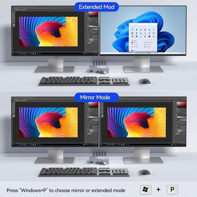 Wide Compatibility with HDMI 2.1 & Multiple Systems KVM switch for 2 monitors and 2 computers with EDID compatible with HDMI 2.1, HDCP 2.3, and supports a wide range of devices: Desktops, laptops, TV Box, TV, PS5, and projectors. HDMI KVM switch 2 monitors 2 computers is compatible with Windows 11/10/8/7/XP, Mac OS, Linux, and Chrome. Computer switch for 2 computers dual monitor is ideal for office, gaming, and home theater setups.