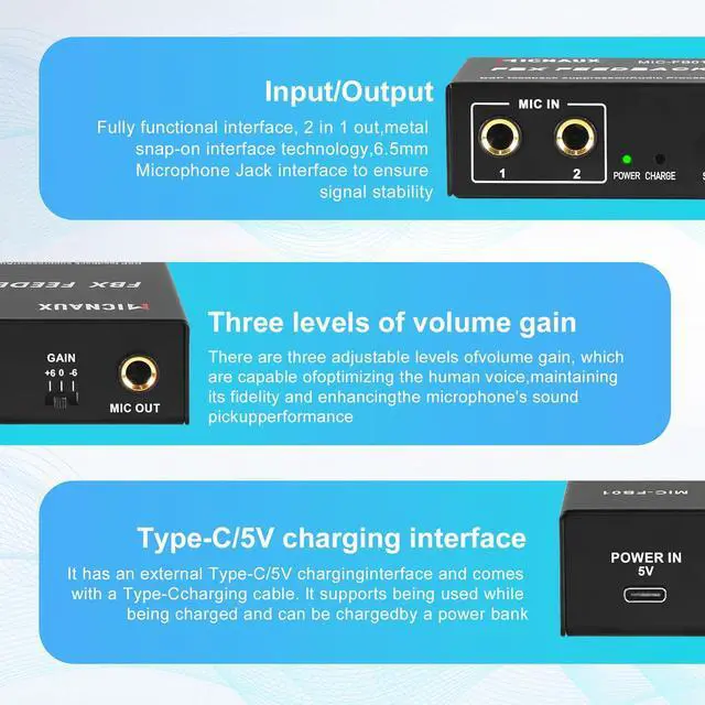 Professional Input & Output Interface: Designed with a 2-in/1-out configuration and professional 6.35 mm jacks featuring metal snap-on technology, ensuring stable signal transmission and seamless connection to mixers, amplifiers, and other audio equipment.