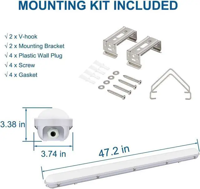 WIDE APPLICATION - The light comes with mounting brackets and screws for wall surface mount installation. It is widely used in various locations such as car wash, warehouse, barn, walk-in freezer, gas station, parking garage, industrial kitchen, stairwells, tunnel, and outdoor venue where moisture is a concern.