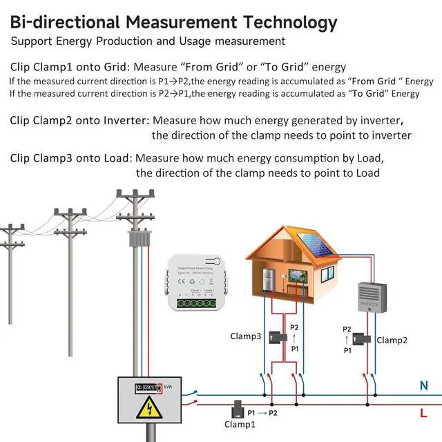 Versatile Functions: Supporting real-time monitoring of voltage, current, power factor, active power, and frequency, this single-phase monitor operates at AC90 250V voltage with an 80A measuring current.