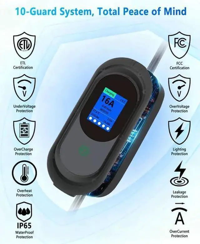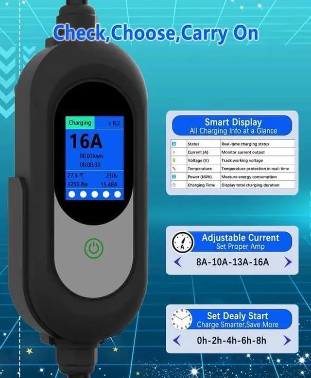 Wide CompatibilityEquipped with a standard NEMA 5-15P & 6-20 plug and SAE J1772 interface, this charger is compatible with most EV models in the U. S. (Tesla vehicles require an adapter). Charge conveniently at home or on the go with ease.