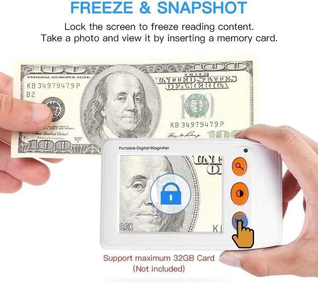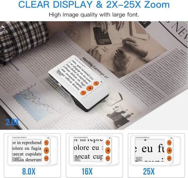 Ergonomic Design & Foldable Bracket: Compact and lightweight with a foldable bracket for flat positioning on a desktop; comfortable to hold for extended use; slide the video magnifier smoothly across books, maps, or newspapers for effortless reading