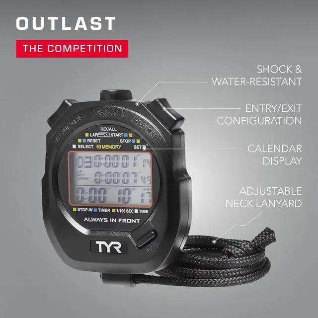 The Z200 Stopwatch is a professionalgrade timing tool built for swimmers, coaches, and athletes who demand precise results during training and competition. Its large, easytoread display tracks every second with accuracy, while split and recall functions make it easy to monitor performance and progress over time. Designed with waterresistant durability and ergonomic comfort, the Z200 withstands poolside conditions and repeated use. Intuitive controls and long battery life ensure youre ready for workouts, swim meets, and interval sets without missing a beat.