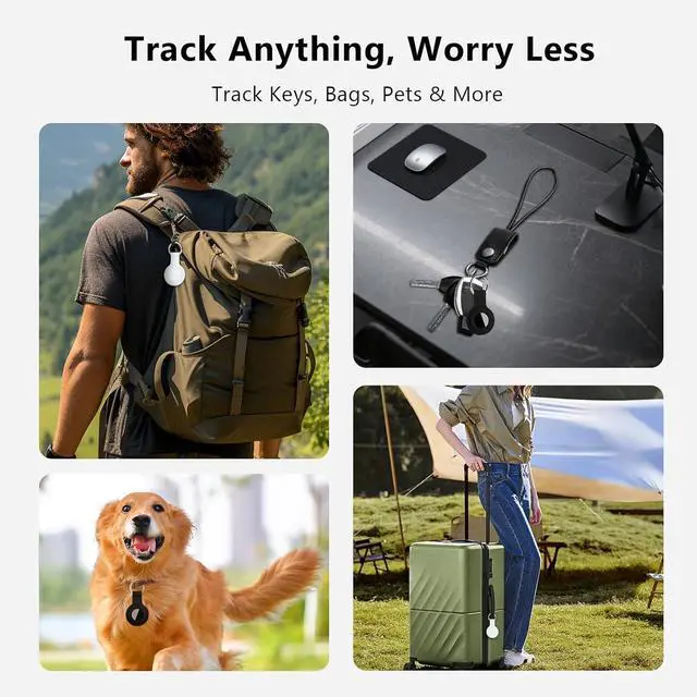 Feather-Light and Multi-Scenario Compatibility: Weighing only 0.21 oz with a 0.23 -inch ultra-slim profile, the scratch-resistant surface ensures zero damage to luxury items. Includes 4 anti-drop silicone cases with hanging hooks for instant secure attachment to luggage, wallets, backpacks, or pet collars effortless one-click setup for 24/7 protection.