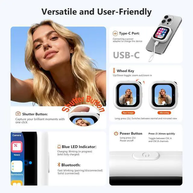 Magnetic Snap-On: Magnetic selfie screen with strong MagSafe adsorption instantly attaches to iPhone 12 and above. For older iPhones or Android devices, included magnetic sheets ensure universal compatibility.