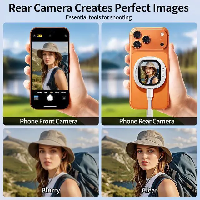 Designed Specifically for iPhone Our phone selfie monitor screen has a built-in magnetic ring that attaches directly to iPhone 12-17 series models (other models require a magnetic ring/ magnetic phone case). The phone back camera monitor screen is compatible with all iPhone models and comes with 2 connection cables to meet different needs.