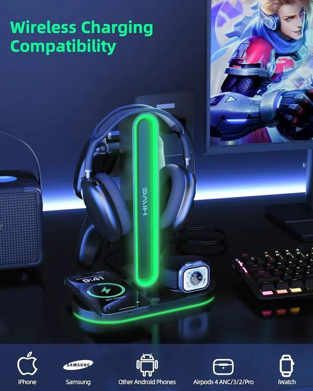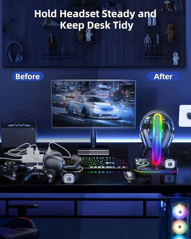 What You Get: Headphone stand, USB-C cable and adatper, manual, which come in a cool package for gift; Perfect for gamers, offices, and holidays like Christmas or birthdays!