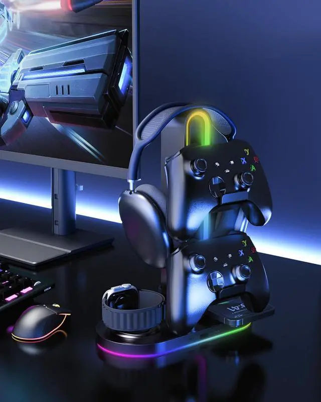 Plug & Play: No setup or install needed; Easy to place/display headsets and controllers, keeps your desk organized; controllers holdes are detachable