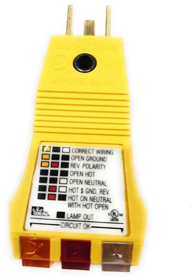 PRODUCT DETAILS: Circuit tester for use on 120 VAC circuits. Features Easy Check label for easy-to-read results. The LED indicator lights, which are highly visible, provide visual proof of correct ground or any common ground faults. Also, indicator lamps have wrap-around lens covers for high visibility from all angles. The product makes receptacles/workers/field service kits grounded appropriately.