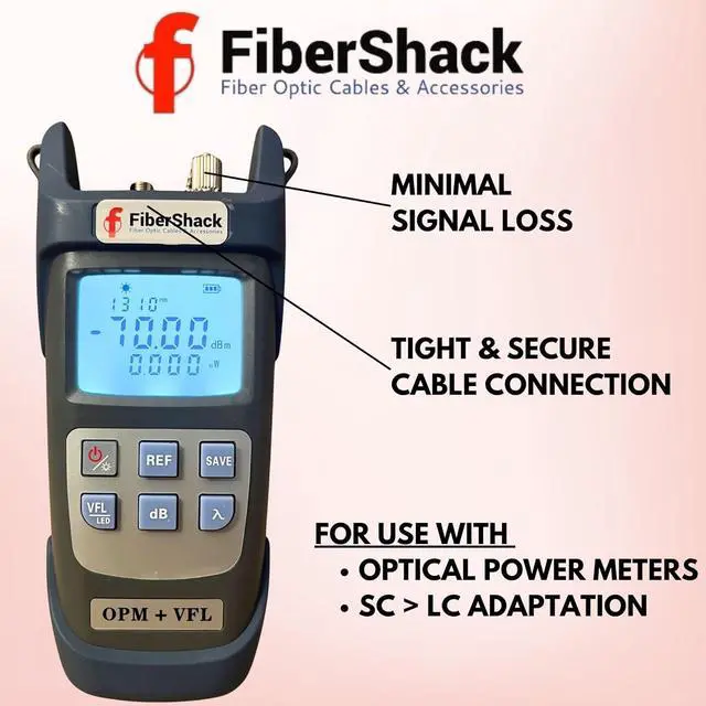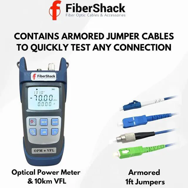 Extras Included - Easy to read display with backlight function and durable belt loop carry case make storage simple, as well as 4 Armored Jumpers & couplers for rapid FC > ST, LC, SC/APC & SC testing, with FC/SC & FC/LC Adapters & Dust Caps