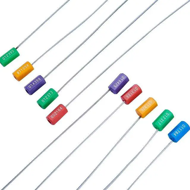 Security Cable Seals Numbered Tamper Proof Security Tags Metal Self-Locking Cable Steel Wire Seal for Truck Container Shipping 200pcs (5 Colors)
