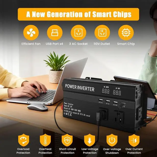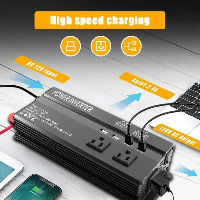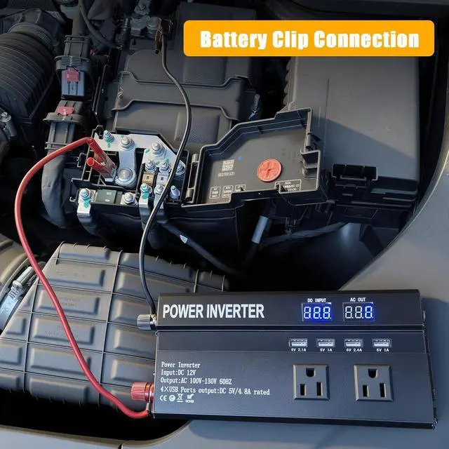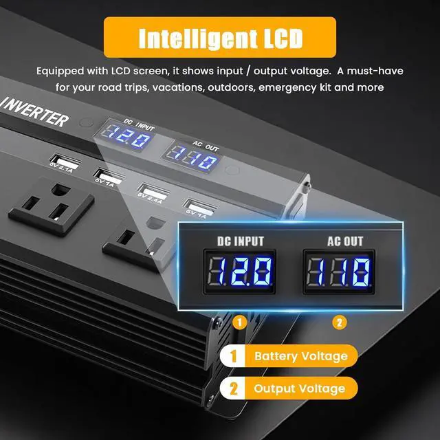 Universal Compatibility: You can use 110V AC power anytime and anywhere just by connecting 1200W power inverter to 12V battery through cable. It is very suitable for power failure, emergency, vacation, car, RV, truck, solar energy, home, remote workplace or any place where AC power is required