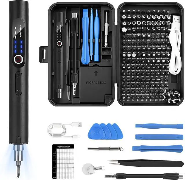Complete Repair Tools KitIncludes 14 practical tools, pry bars, tweezers, suction cup, magnetic mat, triangular spudger, SIM card removal needle and extension rod. This versatile power screwdriver is perfect for DIY hobbyists, IT technicians, electronics enthusiasts and home users for electronics repair and daily maintenance. This compact and versatile mini electric screwdriver set makes an ideal gift for men, birthdays, Fathers Day, Christmas
