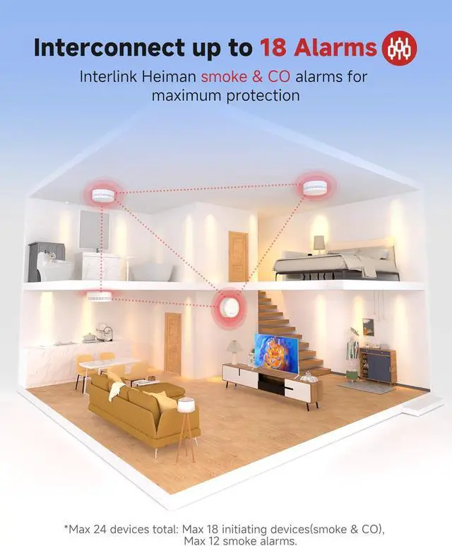 Wireless Interconnected Alarms for Whole-Home Protection Connect all CO alarms into one wireless network so when one alarm sounds, they all sound. With a wireless range of up to 656 ft (200 m), this interconnected carbon monoxide alarm system helps protect every room and alerts everyone in the home faster during an emergency.