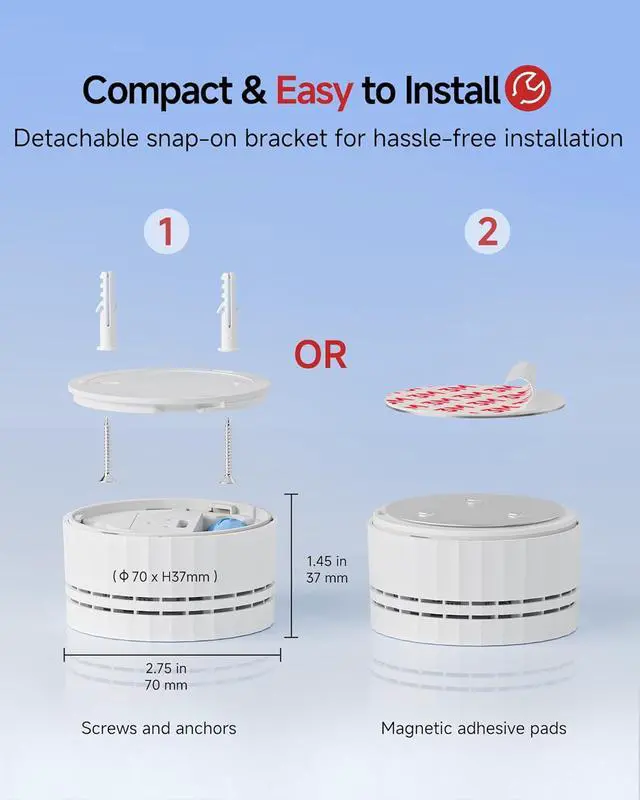 Compact Size & Easy Fit Anywhere Small, lightweight, and unobtrusive, this CO detector fits naturally into everyday living spaces without looking bulky. Ideal for apartments, RVs, campers, modern homes, bedrooms, and other tight or low-profile areas. Easy to install and reliable right out of the boxespecially well suited for renters and mobile living.