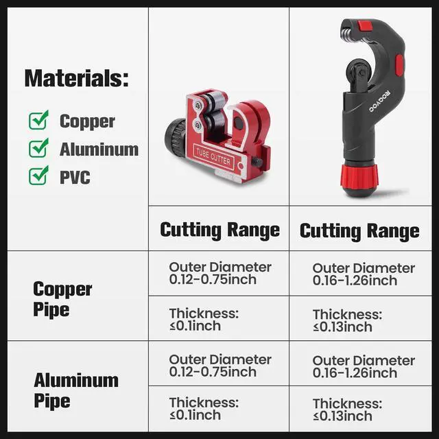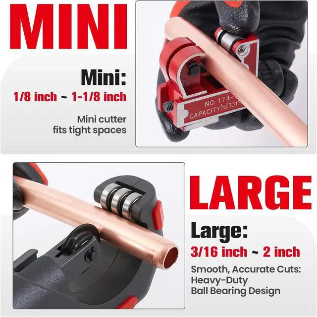 Spare cutting wheels included: Both the mini cutter and the large pipe cutter come with replacement cutting wheels; prevents downtime from blade wear and keeps cutting performance consistent during long-term use