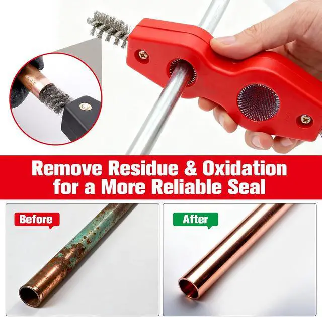 Pipe cleaning brushes for better joint prep: Includes two cleaning brushes designed to remove oxidation and residue from tubing surfaces; supports stronger soldering or brazing joints and improves workflow efficiency in HVAC and plumbing applications