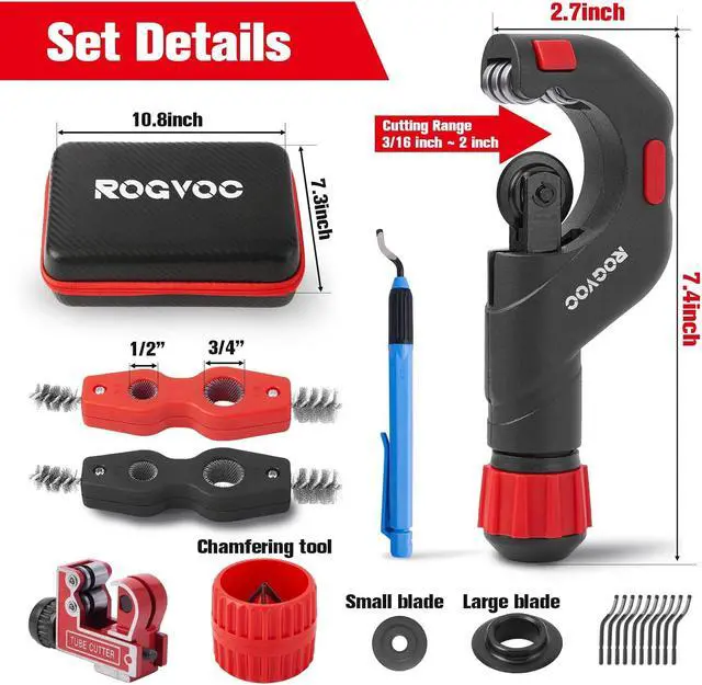 This copper pipe cutting kit is designed for HVAC technicians, plumbers, and refrigeration service work that requires a reliable all-in-one solution. The set includes a compact mini tube cutter for tight spaces, a larger high-capacity cutter for standard HVAC lines, and a deburring tool with ten spare blades to keep cuts clean and ready for fittings. Both cutters feature hardened alloy cutting wheels to maintain shape and cutting precision over extended use. The anti-slip grip design improves control during overhead or narrow-angle work, helping reduce hand fatigue. The included replacement wheels and spare reamer blades ensure long service life without interruption. Whether you are repairing AC line sets, installing copper pipes, or performing routine maintenance, this complete tool kit provides consistent performance for cutting and preparing copper and aluminum tubing used in HVAC and plumbing systems.