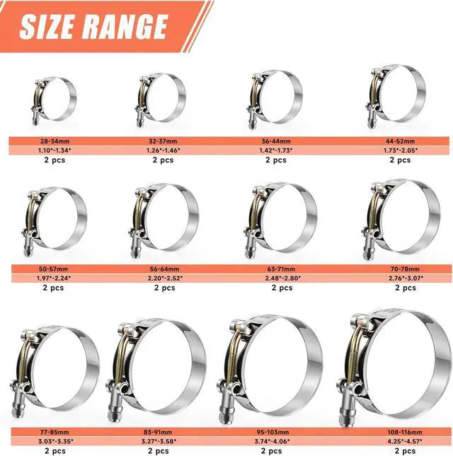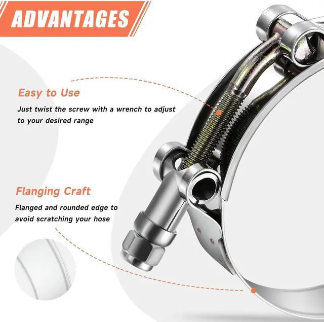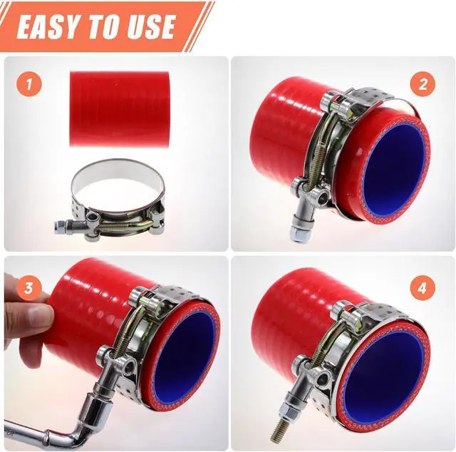 Versatile Application: Our T-Bolt Hose Clamps are suitable for a wide range of industries and purposes, perfect for turbo intake and intercooler applications. Whether you need to secure hoses in automotive, marine, agricultural, or industrial applications, or simply replacing worn-out clamps, these clamps offer reliable and efficient sealing.
