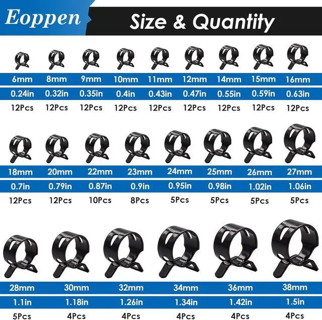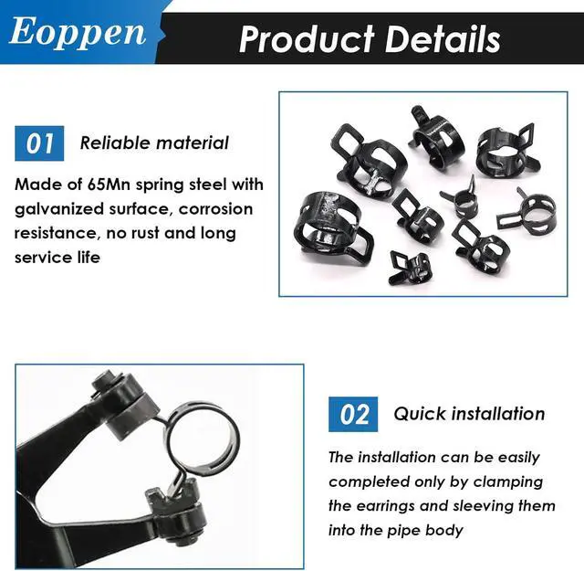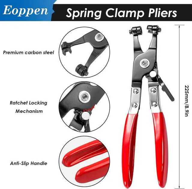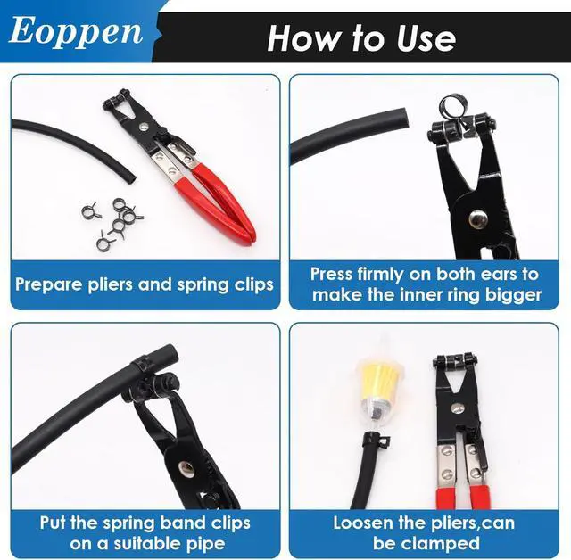 Easy to use: You can use the included hose clamp pliers, press hard on the double ears to make the inner ring bigger, insert the spring clamp into the hose loosely to clamp it, very easy to use and can be reused