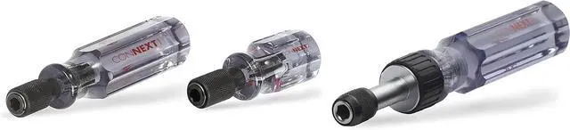 Clear, molded acetate CONNEXT handles are shock-proof, shatter-proof and fluted to fit any hand. The CONNEXT1 model comes in a full size handle grip and is equipped with a quick-connect holder mechanism to accept any 1/4-inch shank chuck driver including Magnetic Hex Chuck Drivers, Hollow Hex Chuck Drivers and Phillips Chuck Drivers.