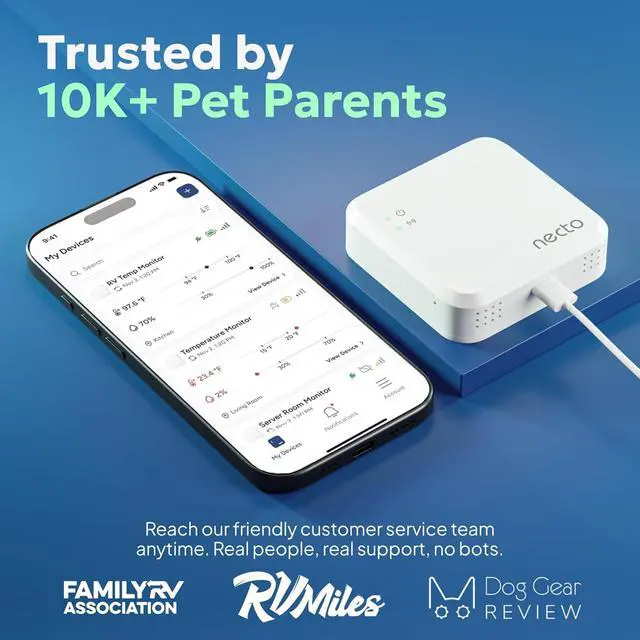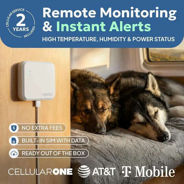 Rechargeable Internal Battery - The smart RV and pet monitor has a 3 day long-lasting rechargeable battery. Unlike WiFi sensors, provides continuous monitoring in the event of a power outage, via its built-in battery and cellular technology. Receive instant alerts on your phone when battery power is low or if the device disconnects from the network.