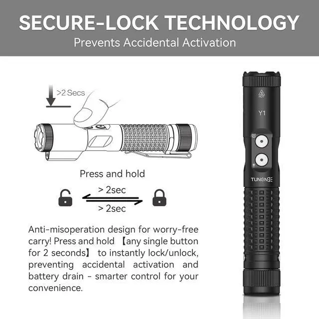 One-Button Lock, Anti-Accidental Touch The Pocket light is equipped with a dedicated lock modepress and hold any button for 2 seconds (light flashes 3 times) to lock; press and hold for 1 second to unlock. Effectively prevents accidental activation in pockets or backpacks, saves power.