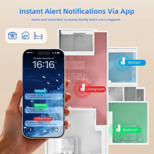 Family Sharing & Auto-Memory - Share device access via the App so multiple family members receive alerts simultaneously. The smart memory function retains your melody and volume settings even after a power outage.