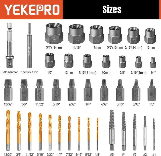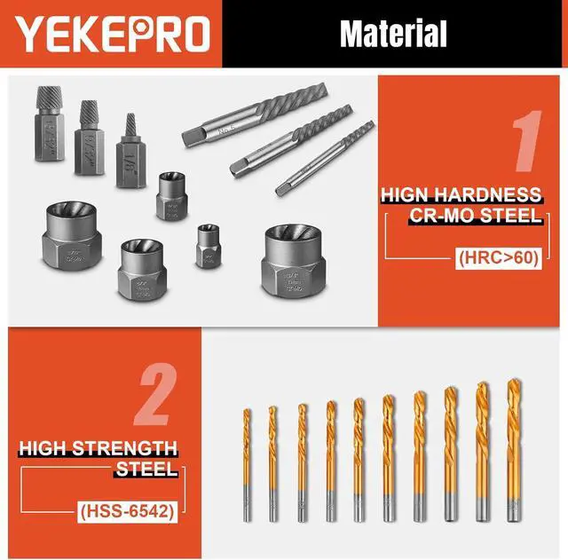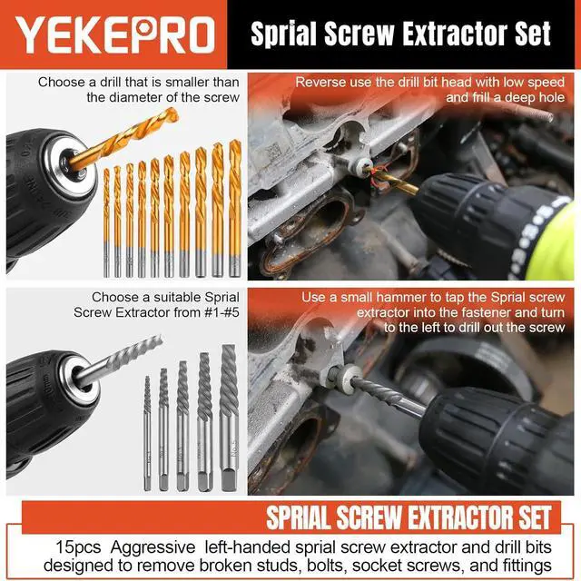 SUITABLE FOR -- Our Bolt & screw extractor with drill kit is suitable for stripped, broken or damaged, bolts, machine screws, lag bolts, wood screws, hex bolts, sheet metal screws, rounded bolts, and other screws