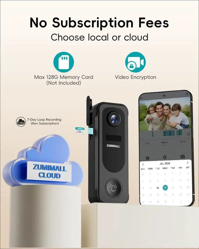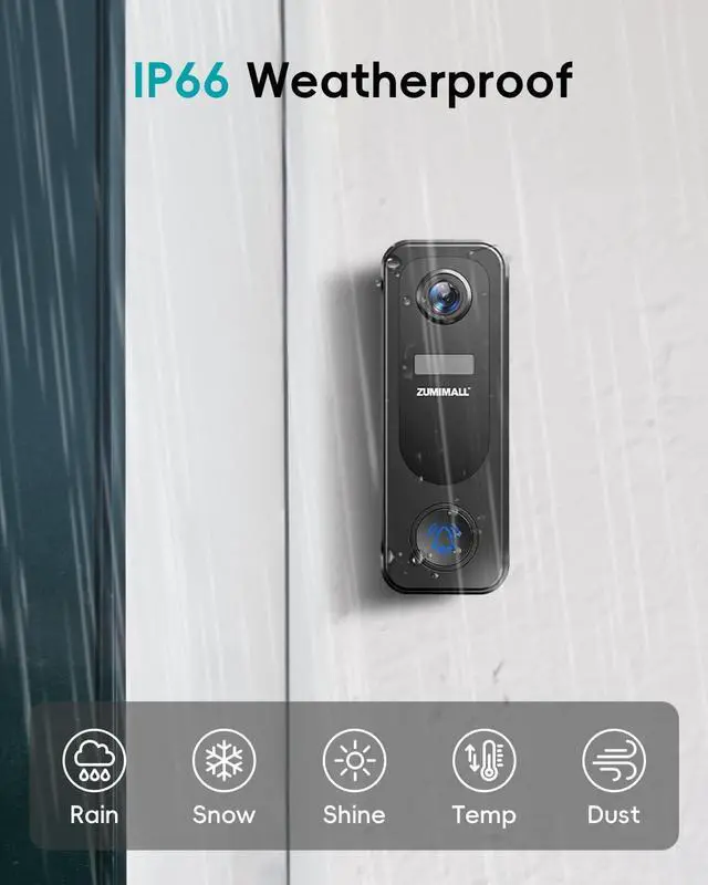 NO MONTHLY FEES & IP66 WEATHERPROOF The video door bell cameras wireless no subscription enjoy dual storage options with zero hidden fees. Local Micro SD card storage (up to 128GB, not included) supports continuous recording with no subscription charges. Free 6-second loop cloud storage is also available for quick access. Boasting an IP66 weatherproof rating, this outdoor door camera resists rain, snow and extreme temperatures for year-round outdoor use.