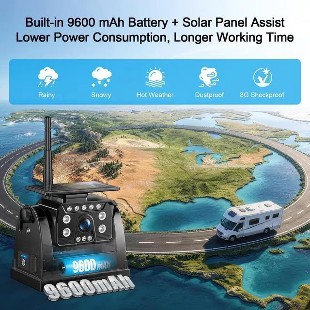 Long-lasting Battery with Solar Assisted Charging: The camera features a solar charging panel combined with a built-in 9600mAh high-capacity rechargeable battery, reducing the hassle of frequent charging for sustained power supply. Auto-sleep mode and low power consumption technology extend battery life, making it ideal for long-distance travel and outdoor camping.
