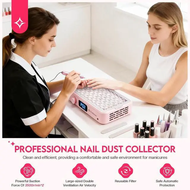 REUSABLE FILTER SYSTEM: Includes a washable HEPA filter and 10 replaceable filter pads to efficiently trap nail dust particles. Simply replace or clean the filter in seconds to maintain strong suction and extend the life of your nail dust collector, making it ideal for busy nail salons and home nail studios.