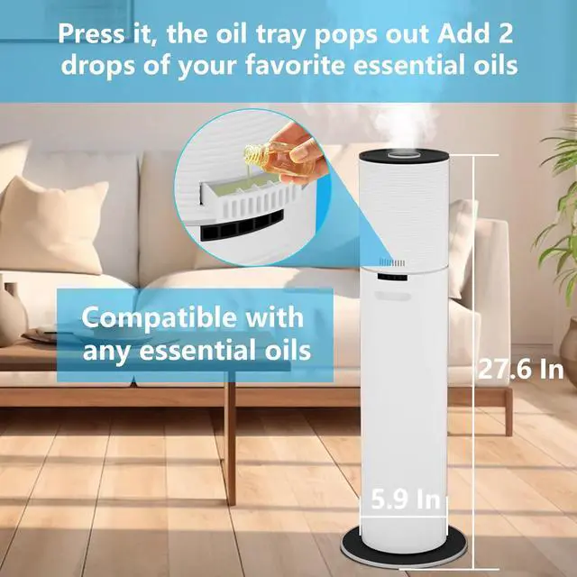 TOP-FILL DESIGNThis professional humidifier can be easily filled water from top without opening the cover, It greatly improves the leakage problem of traditional water tanks. Blue night light for you to set freely, water level is clear at a glance.