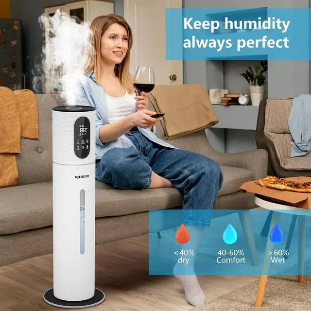 CUSTOMIZED HUMIDITY You can set the ideal humidity between 45% and 95% (Set humidity needs to be higher than indoor humidity). This humidifier for home detects the humidity in your room and adjusts it to meet your set requirements.