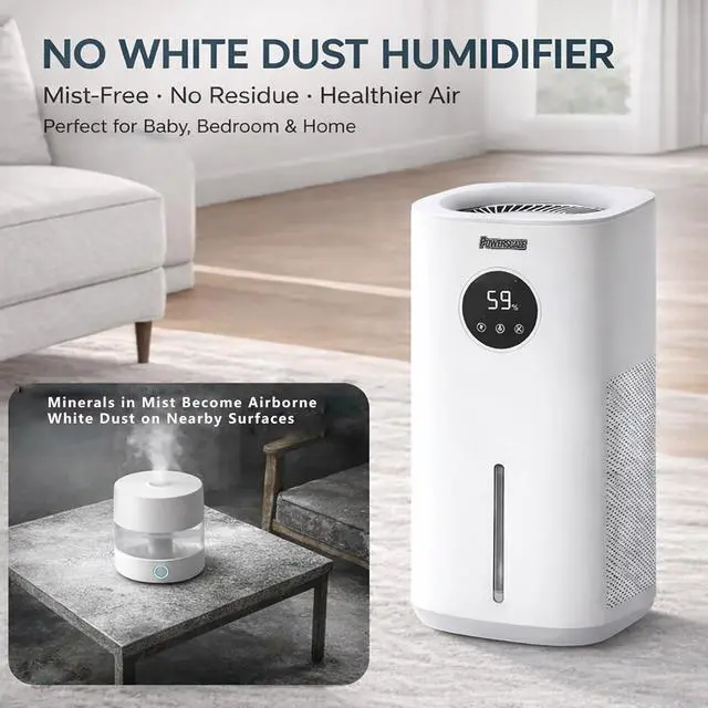 Comfortable Humidity: The MF6 humidifier uses natural evaporation through a wet wick to deliver clean, refreshing humidity without producing mist or white dust, making it ideal for living rooms, bedrooms, offices, nurseries, or indoor plants that benefit from cleaner, residue-free moisture.