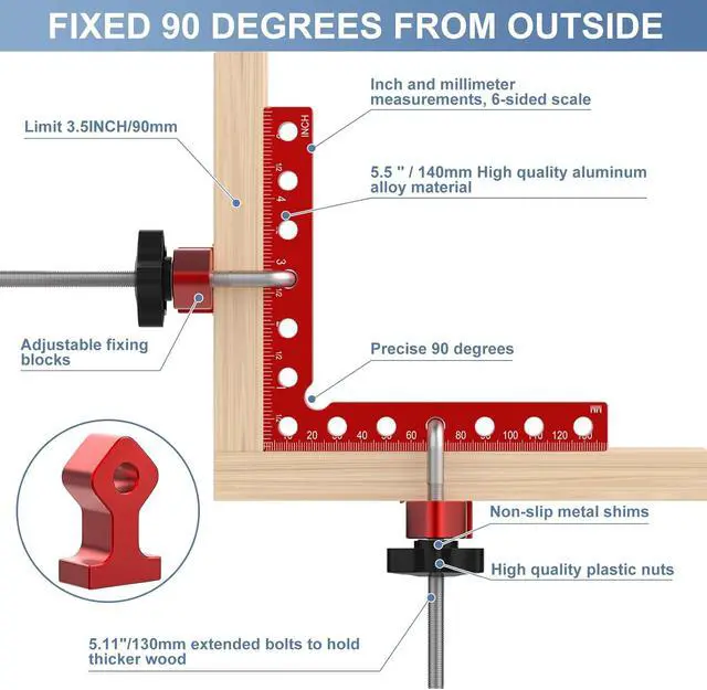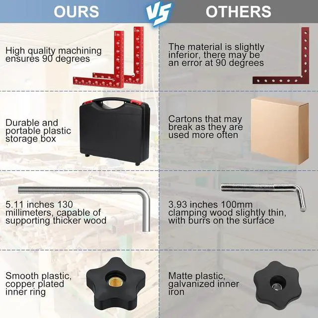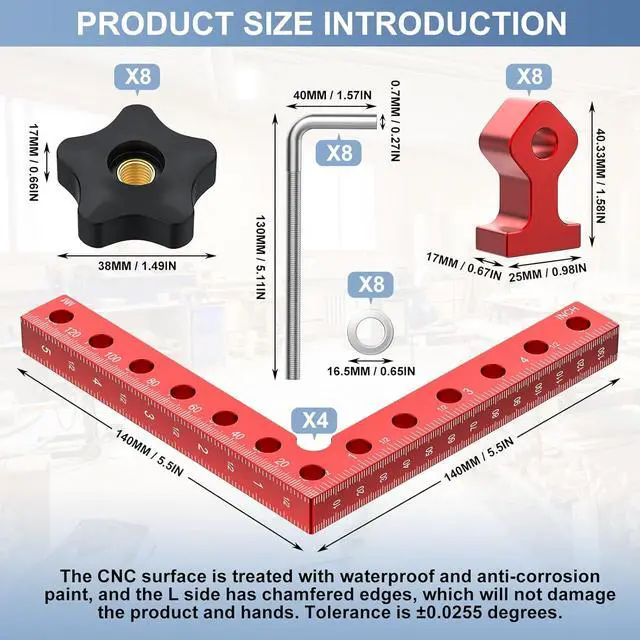 After-Sales ServiceThis 90 degree clamp is very scientific and suitable size choice for woodworkers, it is a unique gift for men, fathers, husbands, woodworkers. We provide one-year warranty service and opened a 24-hour customer service hotline. If you have any quality problems, please contact the after-sales service as soon as possible.