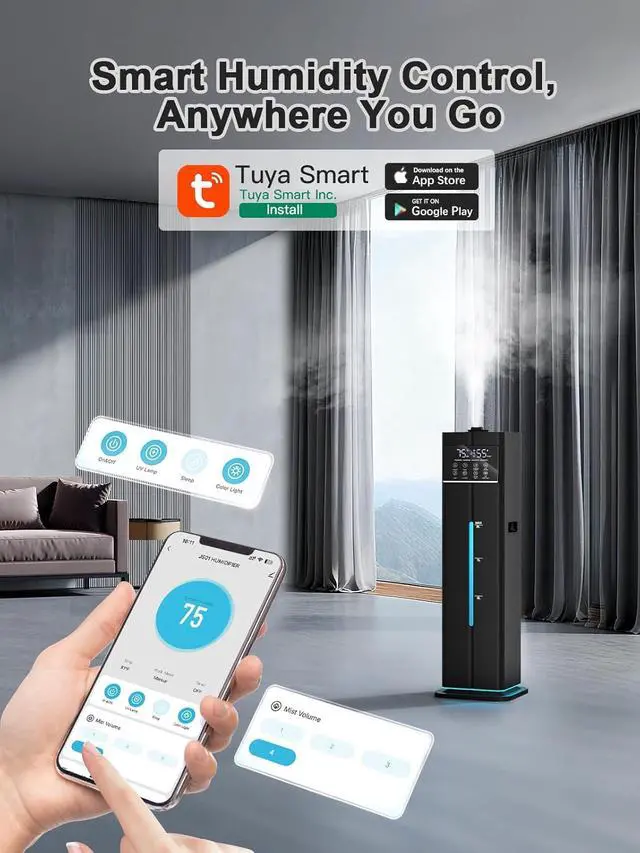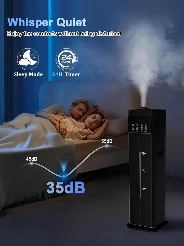 Personalized Comfort, Clearly DisplayedThis humidifier features a large, easy-to-read display for monitoring humidity at a glance. Equipped with a built-in humidity sensor, it allows you to set your target level between 40% and 90% in 5% increments, ensuring your environment remains perfectly comfortable
