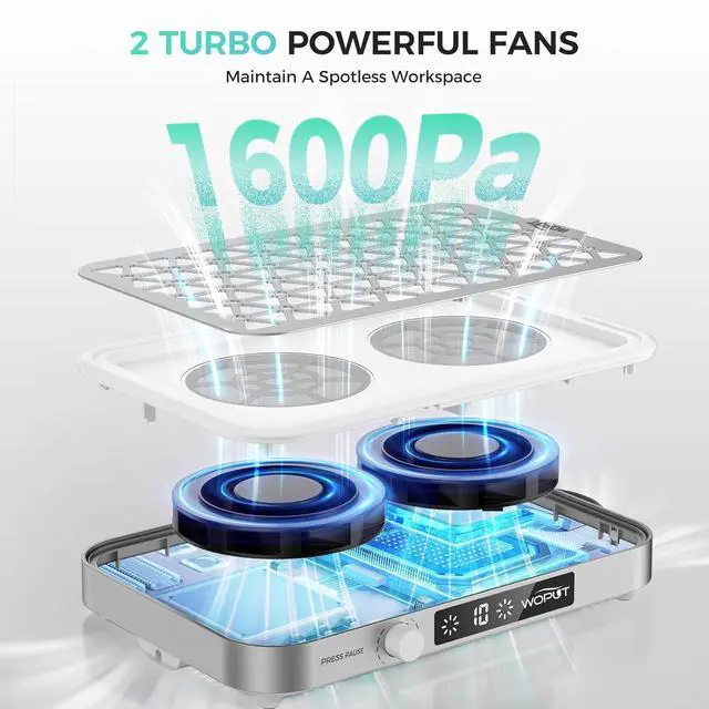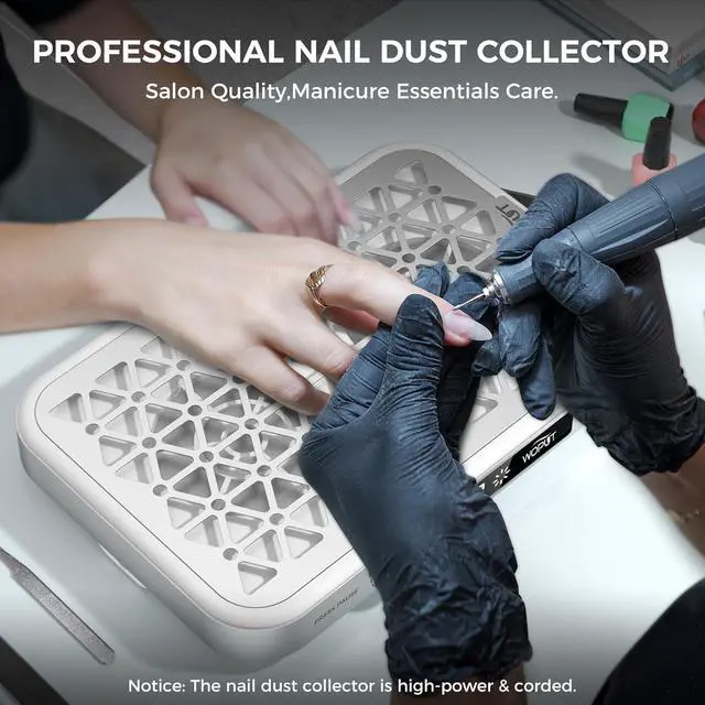 DURABLE & PORTABLEWe features a unique bottom heat dissipation design, make sure it will not overheating even doing the long-lasting work and enjoy a reliable, safe, and prolonged service life nail dust collector. Ultra-thin body with exquisite handle to convenient for carrying outside