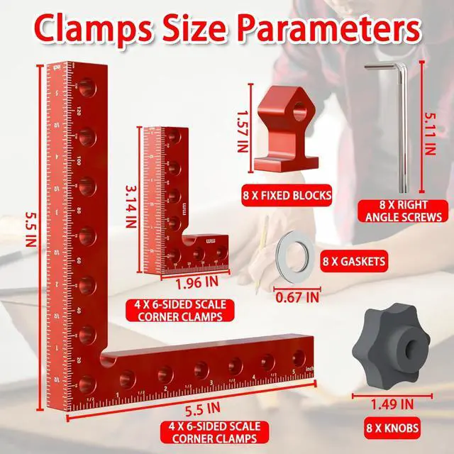 What will get? Compared to 5.5 inch right angle clamps, we've added extra 4pcs 3.14 inch short corner clamps. These enhance functionality, free your hands, to create more intricate woodworking pieces.