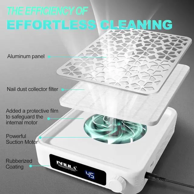 Versatile USB Power Port: Powers nail lamps or drills directly from the collector a versatile hub for pros and enthusiasts. Compatible with all nail types (acrylic, gel, dip powder, natural). Ultra-thin 2.3" design fits any workstation.