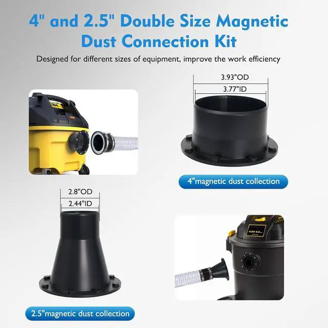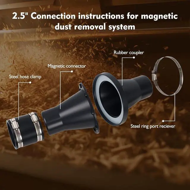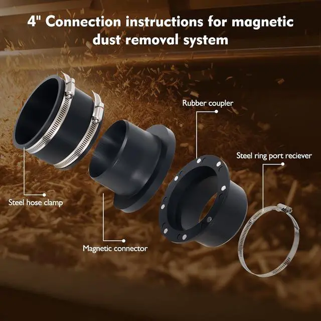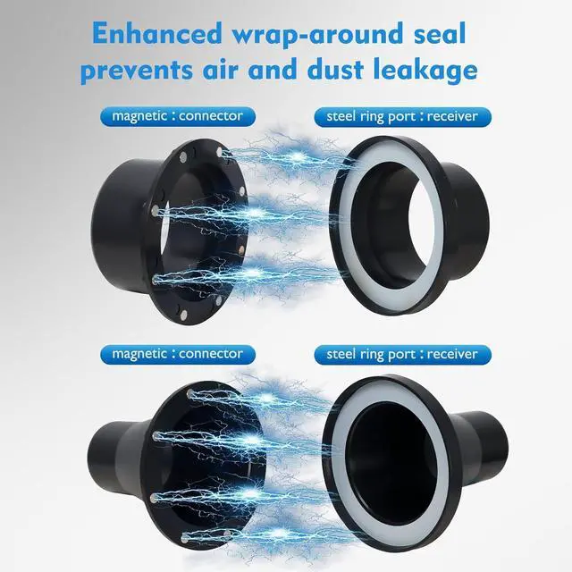 Industrial-Grade Seal & Health Protection: Featuring a corrosion-resistant magnetic core and high-flex rubber couplers, our dust collection fittings create a durable, airtight seal. This effectively minimizes dust leakage, protecting the workshop air quality for woodworkers.